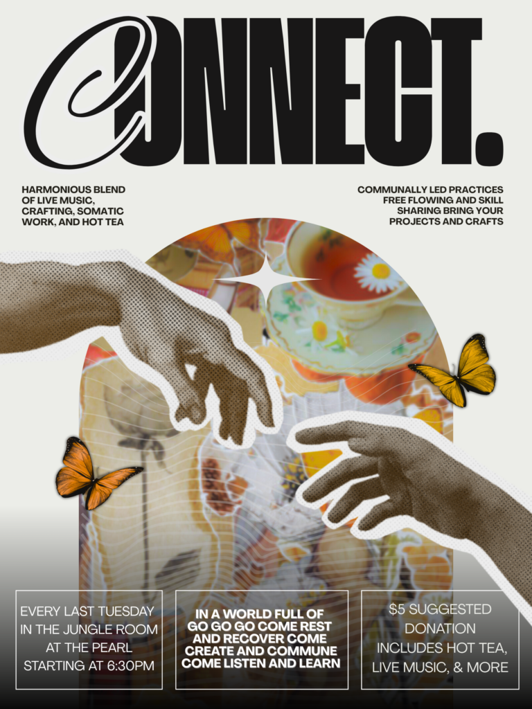 Harmonious blend of live music, crafting, somatic work, and hot tea.