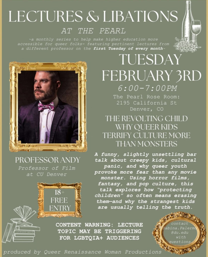 Introducing a monthly series to help make higher education more accessible for queer folks – featuring pertinent lectures from Denver University professors.